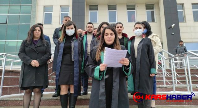 Kars Adliyesi önünde toplanan avukatlar, 8 Mart Dünya Kadınlar Günü dolayısıyla açıklama yaptı.