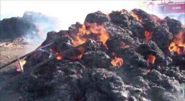 Taşbaşı köyünde oturan Hüseyin ve Yakup Aslan'a ait ot yığınları henüz belirlenemeyen sebeple yanmaya başladı.