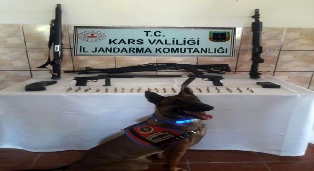 Akyaka'da jandarma ekipleri tarafından yapılan operasyonda 2 tabanca, 3 av tüfeği ele geçirildi.