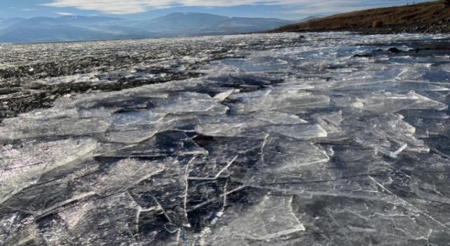 ARDAHAN'ın Çıldır ilçesi ile Kars'ın Arpaçay ilçesi arasında bulunan ve aşağı yukarı 124 kilometrekarelik alanı kaplayan Çıldır Gölü'nün yüzeyi, gece yarısı etkili olan soğuk hava nedeniyle buz tuttu. Gölün yüzeyini kaplayan buz tabakası, gündüz esen rüzgarla parçalanıp, savrularak sahile vurdu.Ardahan'da hava sıcaklığının sıfırın altında 12'ye düşmesi Çıldır Gölü'nün yüzeyinin buz tutmasına neden oldu. Gölün üzerini kaplayan buz tabakası, sabah başlayıp öğle saatlerine kadar etkili olan şiddetli rüzgarda parçalandı. Rüzgar gölün yüzeyindeki buz parçalarını sahile taşıdı.