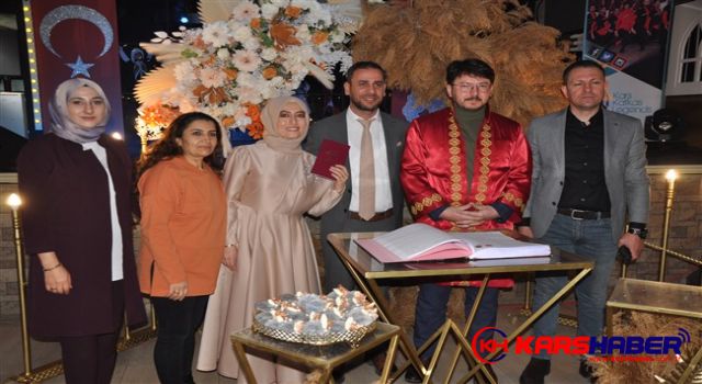 Sahne Kars Gösteri Merkezinde düzenlenen nikah töreninde