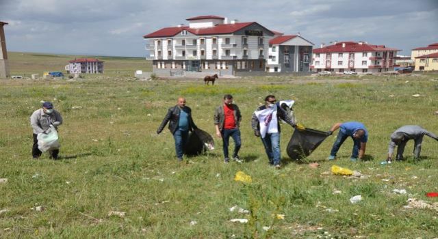 Kars'ın Sarıkamış ilçesinde Çevre Koruma Haftası kapsamında bir araya gelen gruptakiler, "Temiz bir Sarıkamış için" sloganıyla çöp topladı.